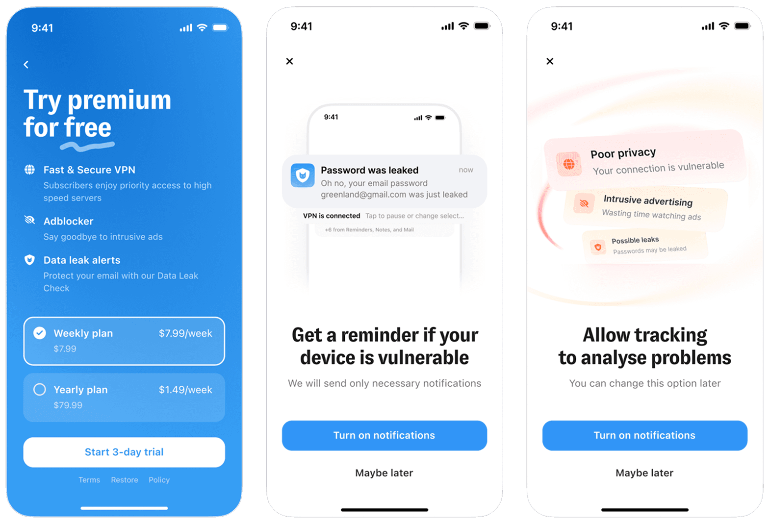 The studio requested to design a paid application utility with 4 main tools: VPN, AdBlock, Password leak checking, and connection Speedtest