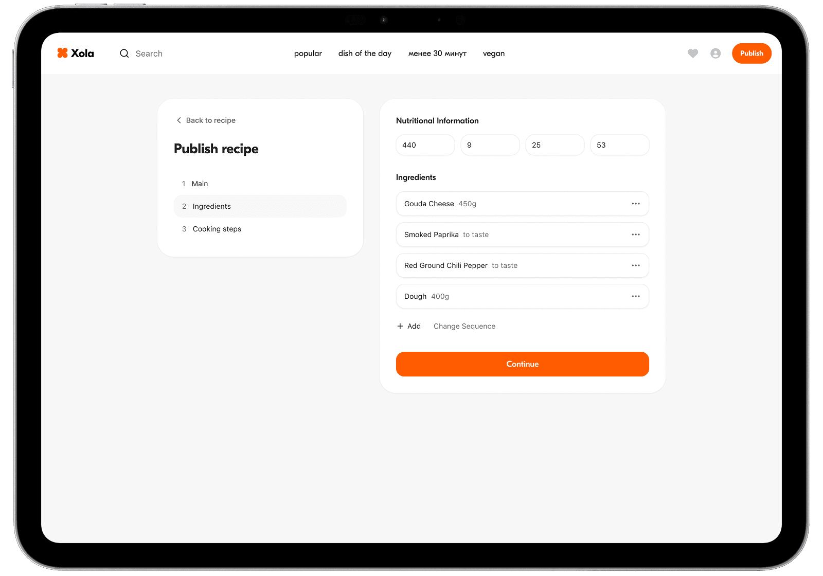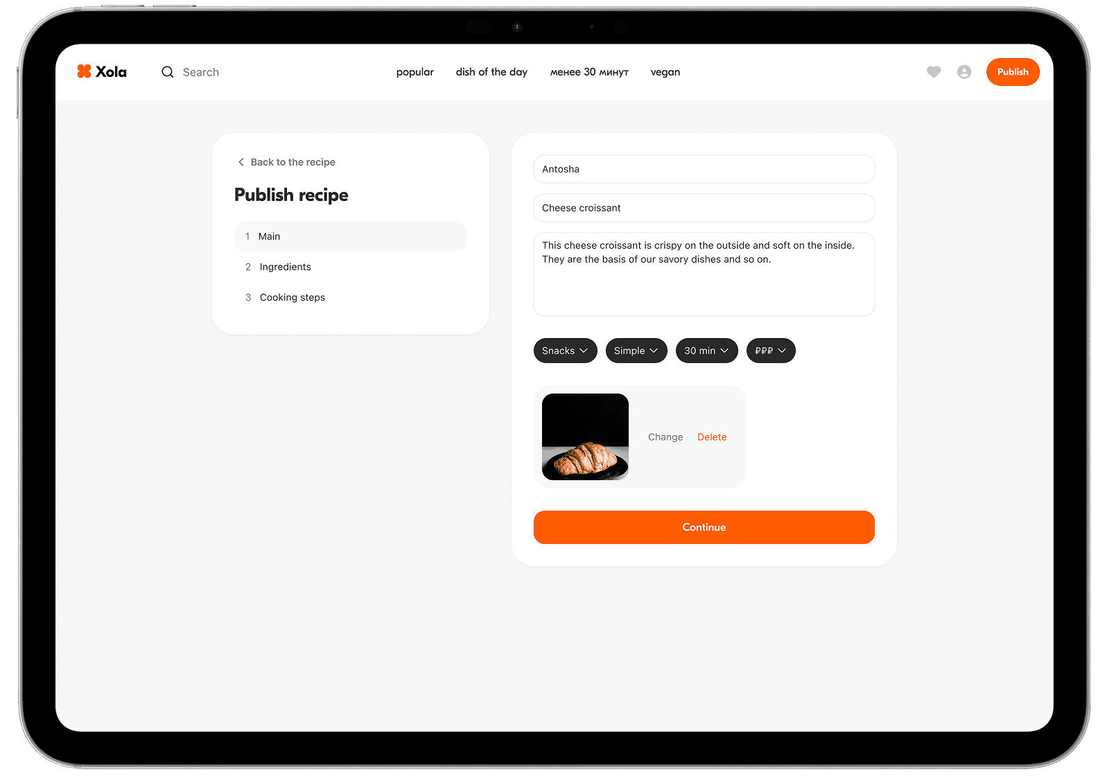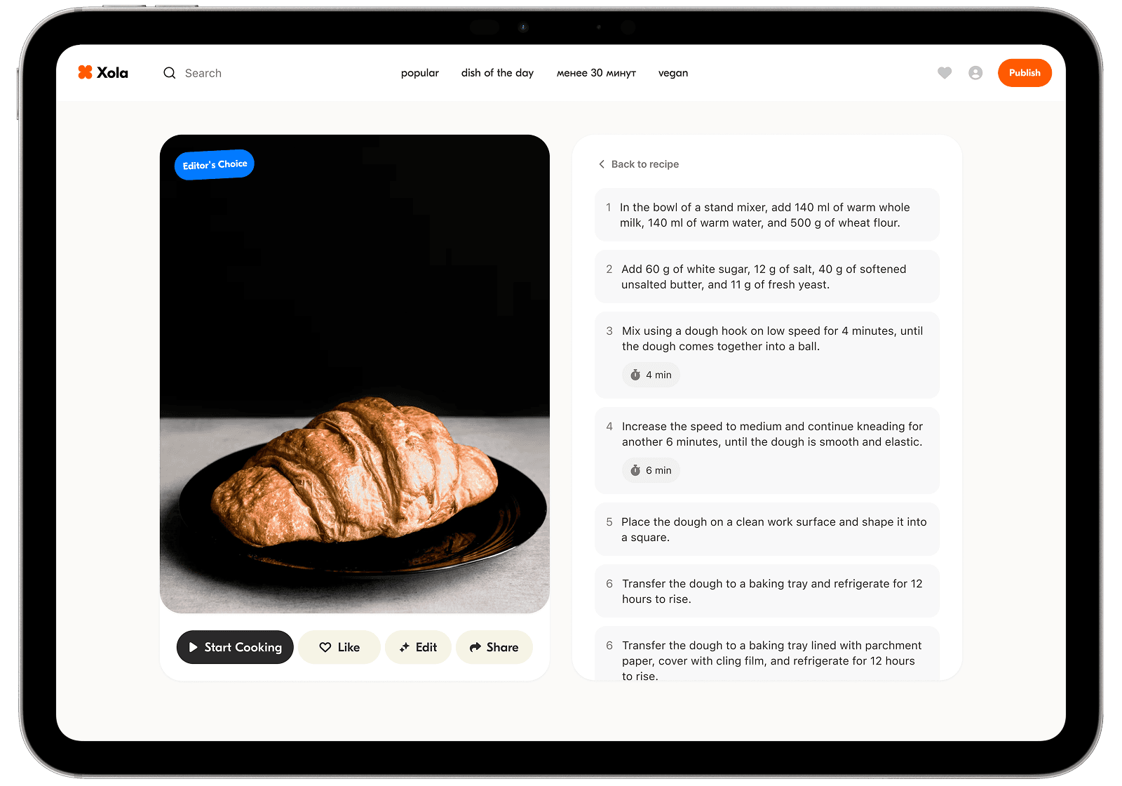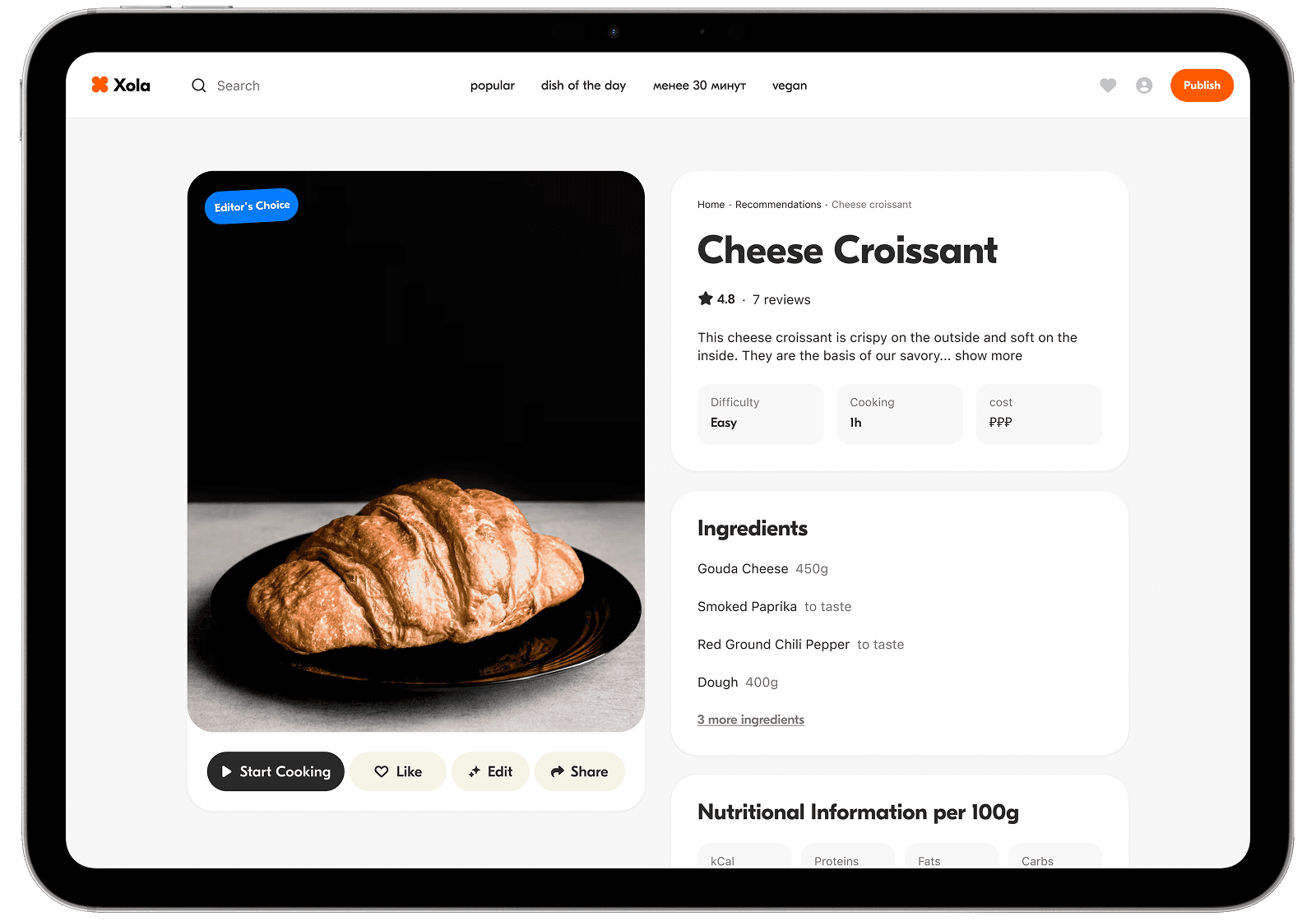 The client came with a request to develop a service for finding suitable recipes that can also assist with modifying ingredients and instructions using a GPT-based chatbot.